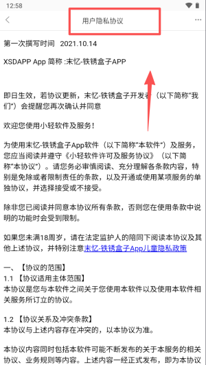 2、继续浏览用户协议,确认18岁以下需监护人陪同并受儿童政策保护。