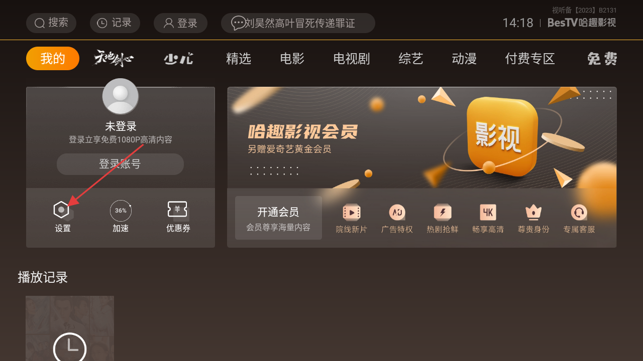 1、进入【BesTV哈趣影视】主界面,点击【我的】板块,可进入个人功能区域,方便后续操作。