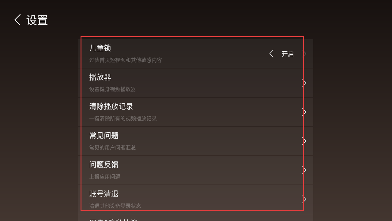 4、开启【儿童锁】后,可过滤首页短视频和其他敏感内容,同时设置界面还有【播放器】【清除播放记录】等功能可按需使用。