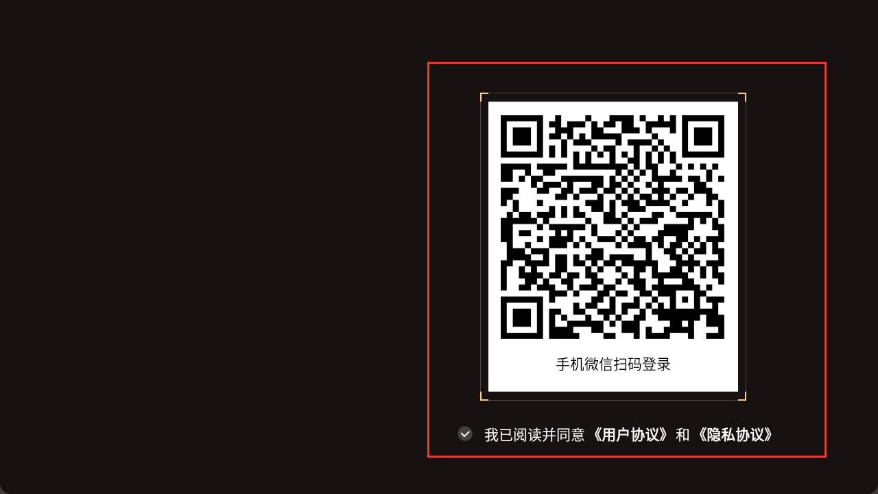 4、登录时勾选【我已阅读并同意《用户协议》和《隐私协议》】,用手机微信扫描二维码即可完成登录。
