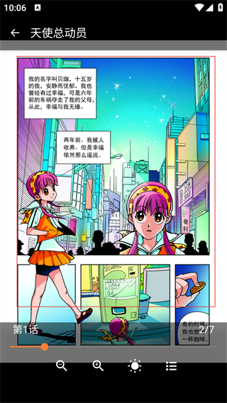 4、在漫画阅读界面,可查看漫画分镜内容,界面底部有放大、亮度调节、目录等功能按钮,方便阅读操作。