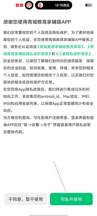 1、打开APP后,在隐私政策页面点击【同意并使用】按钮,进入应用。