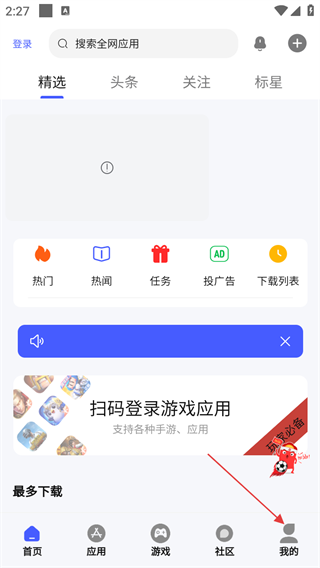 1、在舜舜游戏盒首页,点击右下角【我的】,进入个人界面。