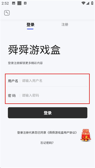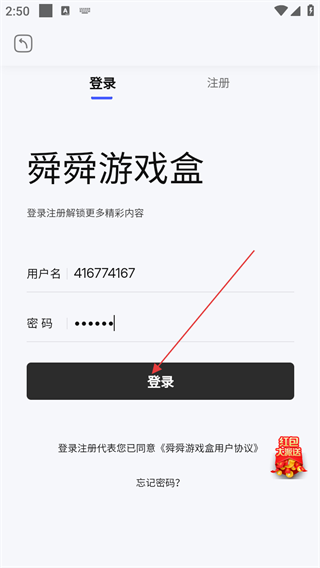 2. 下载安装舜舜游戏盒后,玩家可以注册账号并登录。