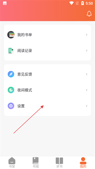 1、在书架页面可查看已收藏的小说,若想清理缓存,点击右下角【我的】进入个人页面。