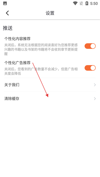 3、在【设置】界面,点击【清除缓存】选项,可进入缓存清理页面选择清理类型。