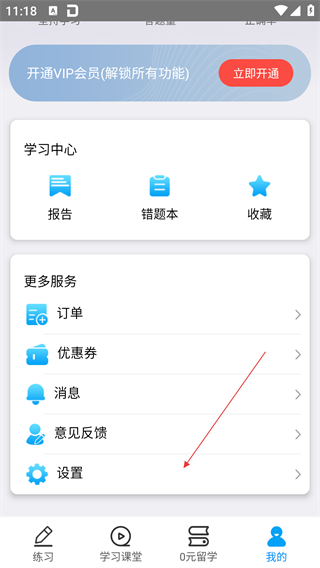 1、在应用的“练习”主界面,点击底部导航栏的【我的】选项,进入个人中心页面。