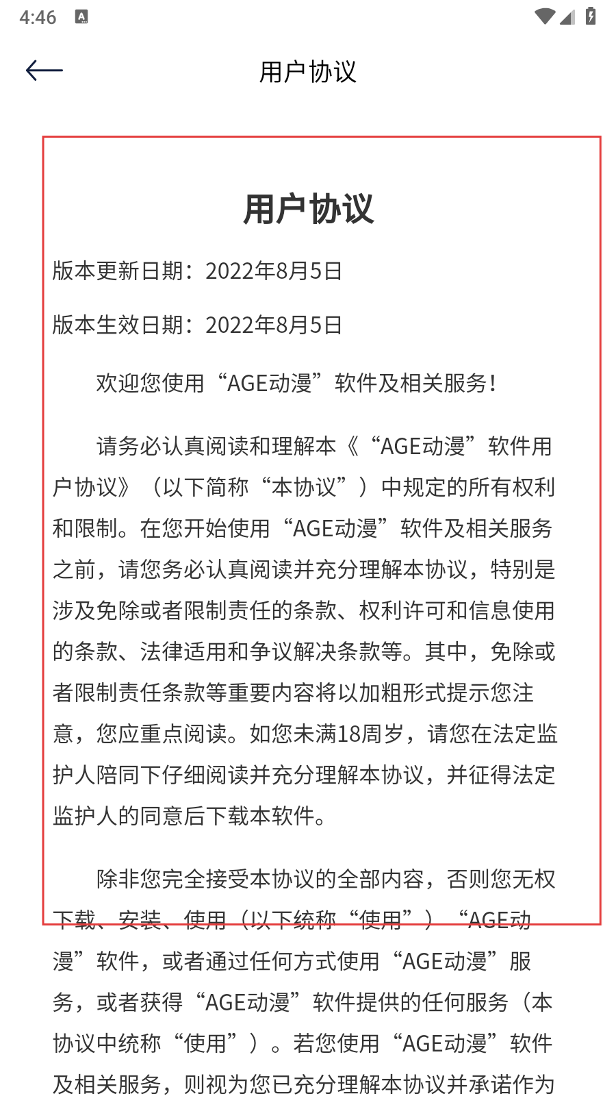 4、查看【用户协议】时,留意版本更新和生效日期,重点关注权利限制、责任免除等条款,确保知晓使用规范。