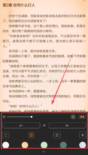 2. 个性化阅读设置:调整字体大小、背景颜色等。