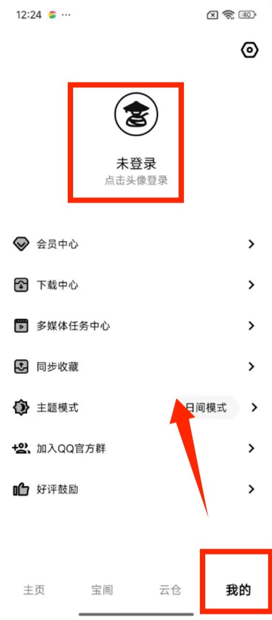 3、打开 “我的” 页面,点击头像区域进入登录界面,可选择微信、QQ 等方式完成账号登录操作。
