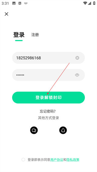 4、输入手机号码和密码后,点击【登录解锁封印】按钮,即可完成登录操作。