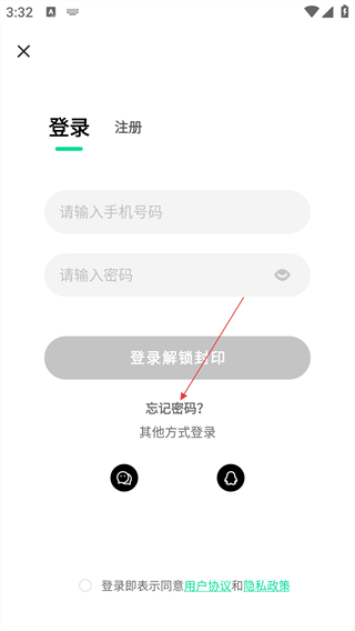 3、在个人中心界面的登录页面,若忘记密码可点击【忘记密码?】选项,进入重置密码界面。
