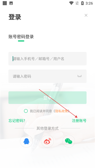 3、在登录界面,选择【注册账号】选项,进入账号注册页面。