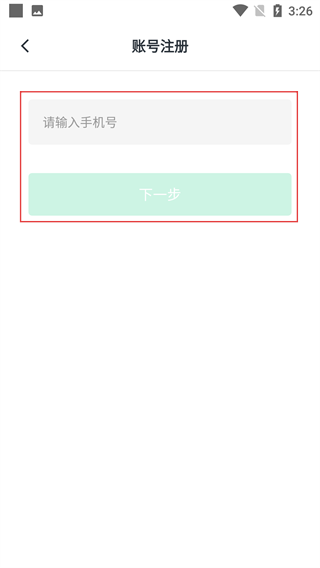 4、在账号注册页面,输入手机号码后点击【下一步】,继续完成后续注册流程。