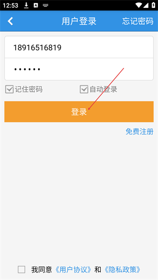 4、勾选“我同意《用户协议》和《隐私政策》”,点击“登录”按钮,完成账号登录。
