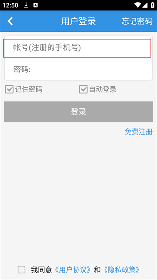 3、在用户登录页面,输入注册时的手机号码。