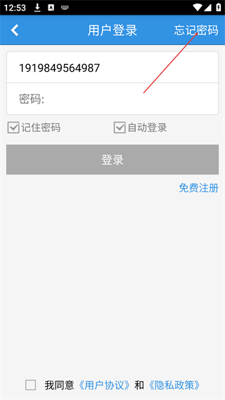 4、输入注册时的手机号码后,点击页面右上角“忘记密码”选项,进入密码找回流程。