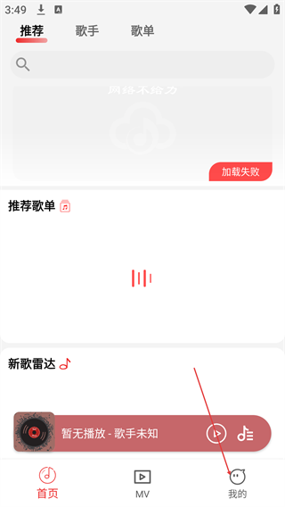 1、在音乐APP首页,点击底部导航栏的【我的】选项,进入个人中心页面。