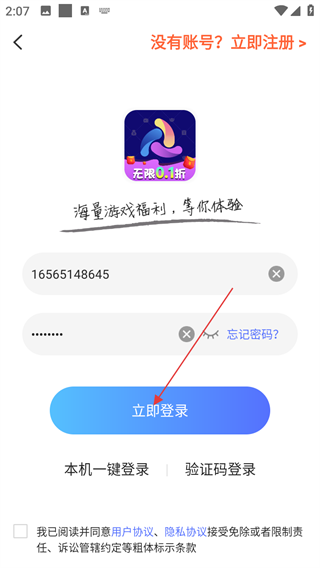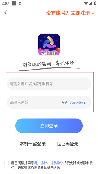 3、在登录界面,输入用户名/绑定手机号和密码,准确填写后勾选已阅读并同意协议。