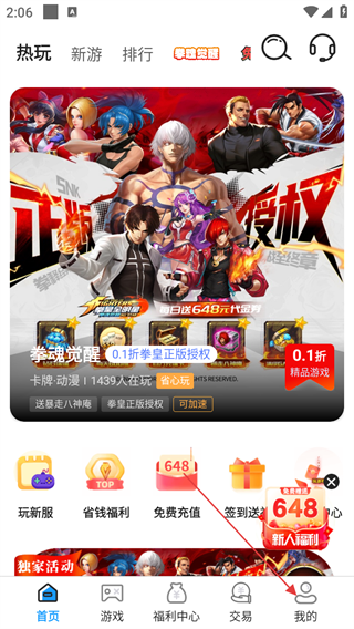 1、在无限游戏盒子首页,点击右下角【我的】,进入个人界面。