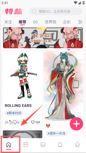 1、点击底部 “首页”,可看到推荐的各类创作内容,还有万圣节活动展示,方便浏览感兴趣的作品。