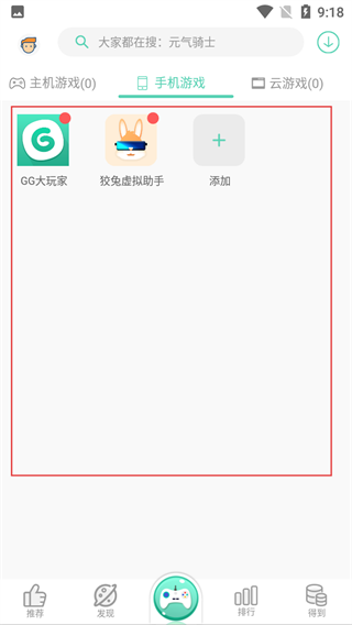 4、添加完成后返回主界面,可在手机游戏分类下看到已添加的“狡兔虚拟助手”,实现应用的管理与调用。