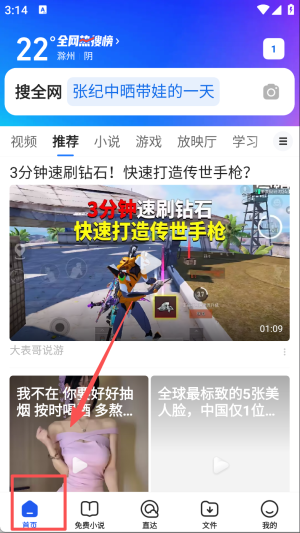 1、点击首页按钮,进入应用主界面,开始搜索或浏览内容。