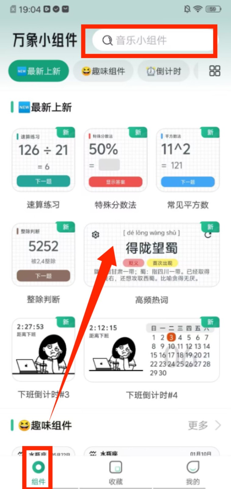 1、进入组件页面,在搜索栏输入关键词查找组件,也能在 “最新上新” 板块浏览速算练习等工具类组件。