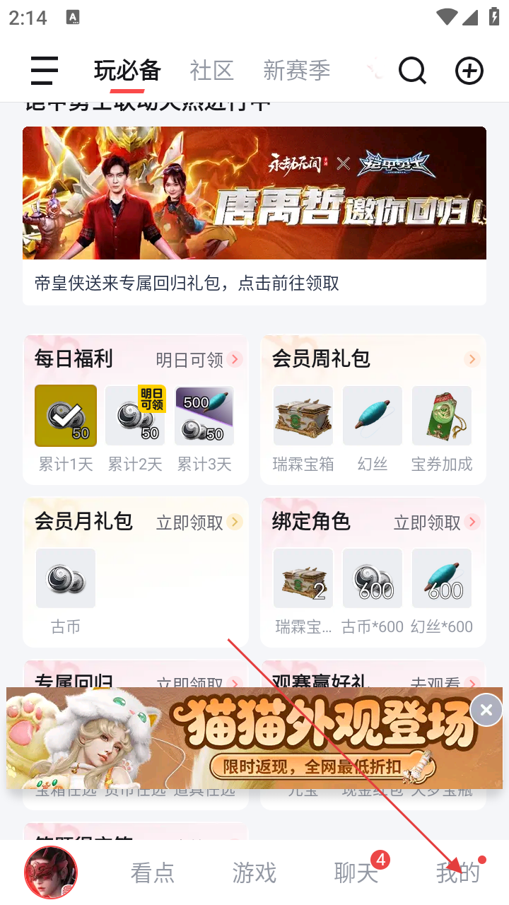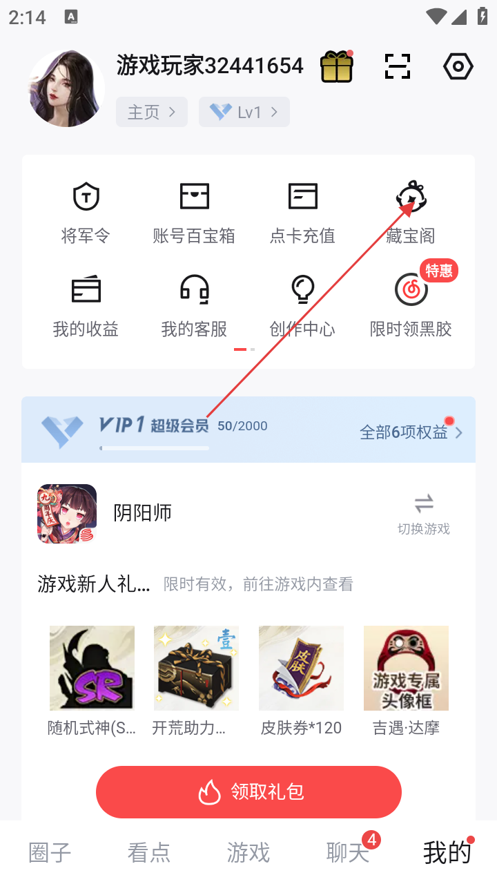 2、进入“我的”页面,点击【藏宝阁】选项。