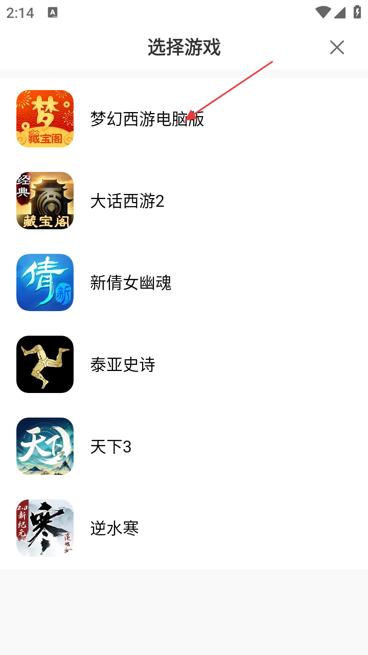 3、进入“选择游戏”页面,点击【梦幻西游电脑版】。