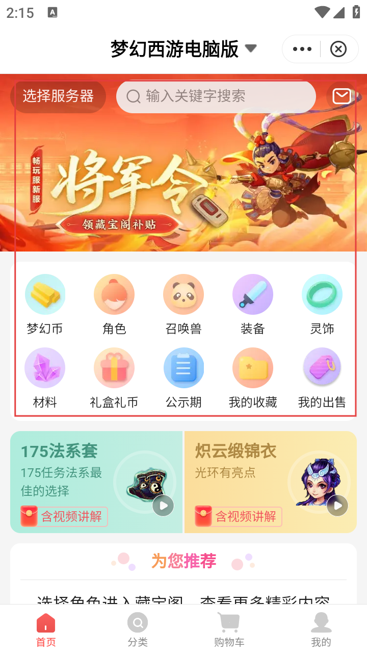 4、进入《梦幻西游电脑版》藏宝阁页面,可在该页面查看和操作梦幻币、角色、召唤兽等相关内容。