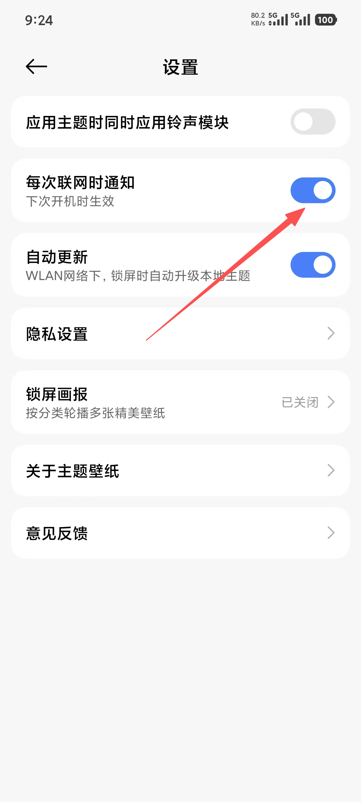 4、关闭后,APP将不再在每次联网时发送通知,可减少干扰,提升使用体验。