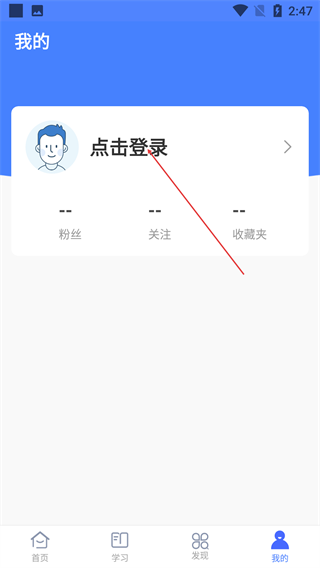 2、在个人中心页面,点击【点击登录】区域,跳转至登录界面。