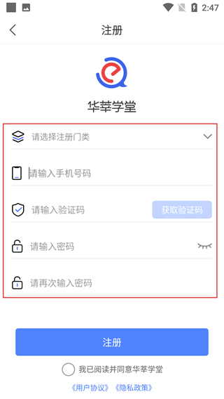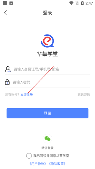 3、在登录界面,点击【立即注册】,进入华莘学堂的注册页面。