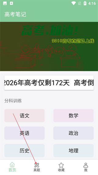 2、在主界面点击底部“真题”按钮,进入真题列表页面。