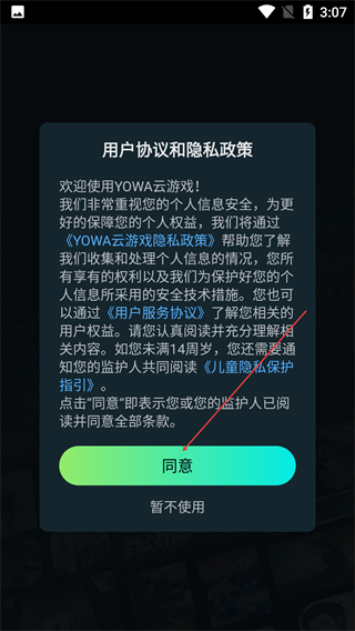 1、首次打开APP,阅读《用户协议和隐私政策》后,点击“同意”,接受相关条款并进入APP。