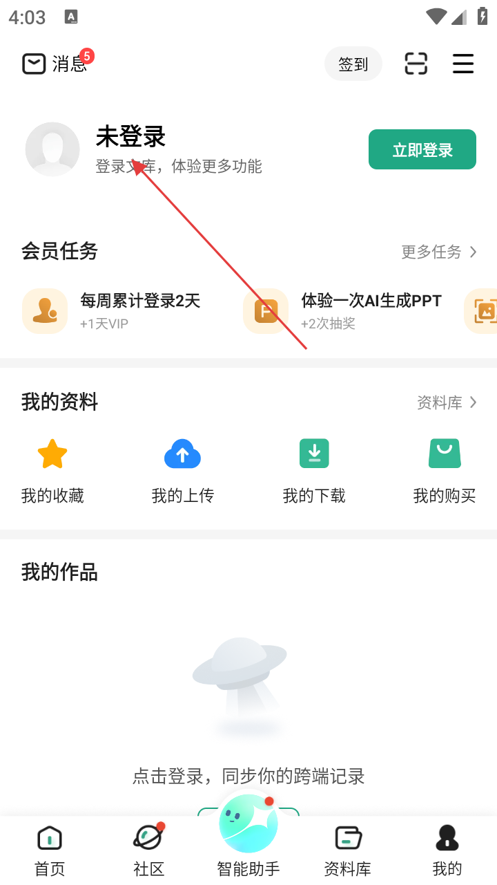 1、打开百度文库APP,进入首页后,点击右下角【我的】按钮,进入个人相关页面。