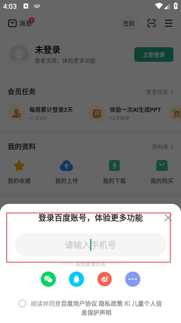 3、弹出登录百度账号的界面,在输入框中输入手机号码,准备进行登录验证。
