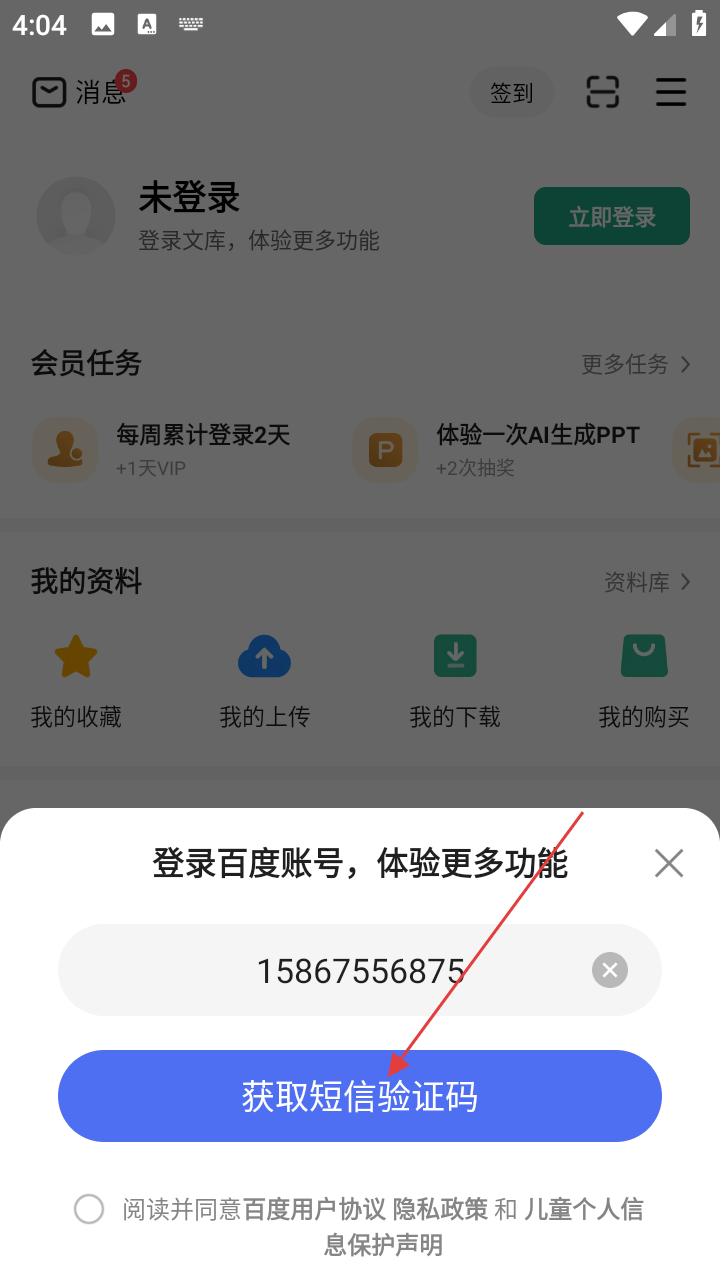 4、输入手机号后,点击【获取短信验证码】按钮,获取验证码以完成登录操作。
