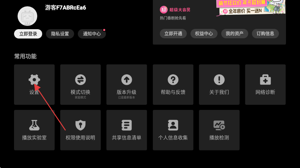 1、初次设置跳过片头片尾,先任意打开一个视频,然后点击遥控器的菜单,弹出后选择设置。
