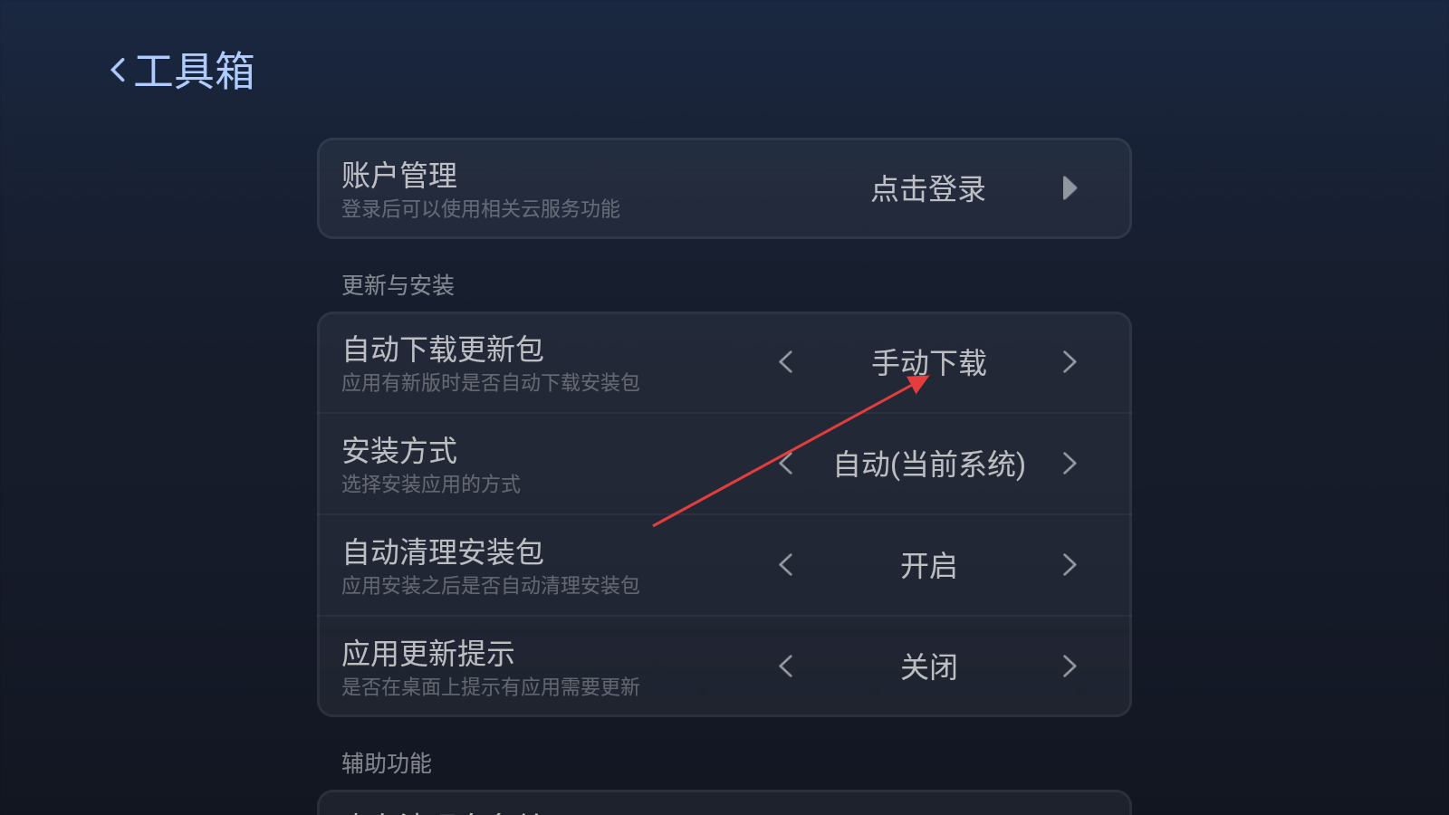 3、在设置页面找到【自动下载更新包】选项,点击该选项。