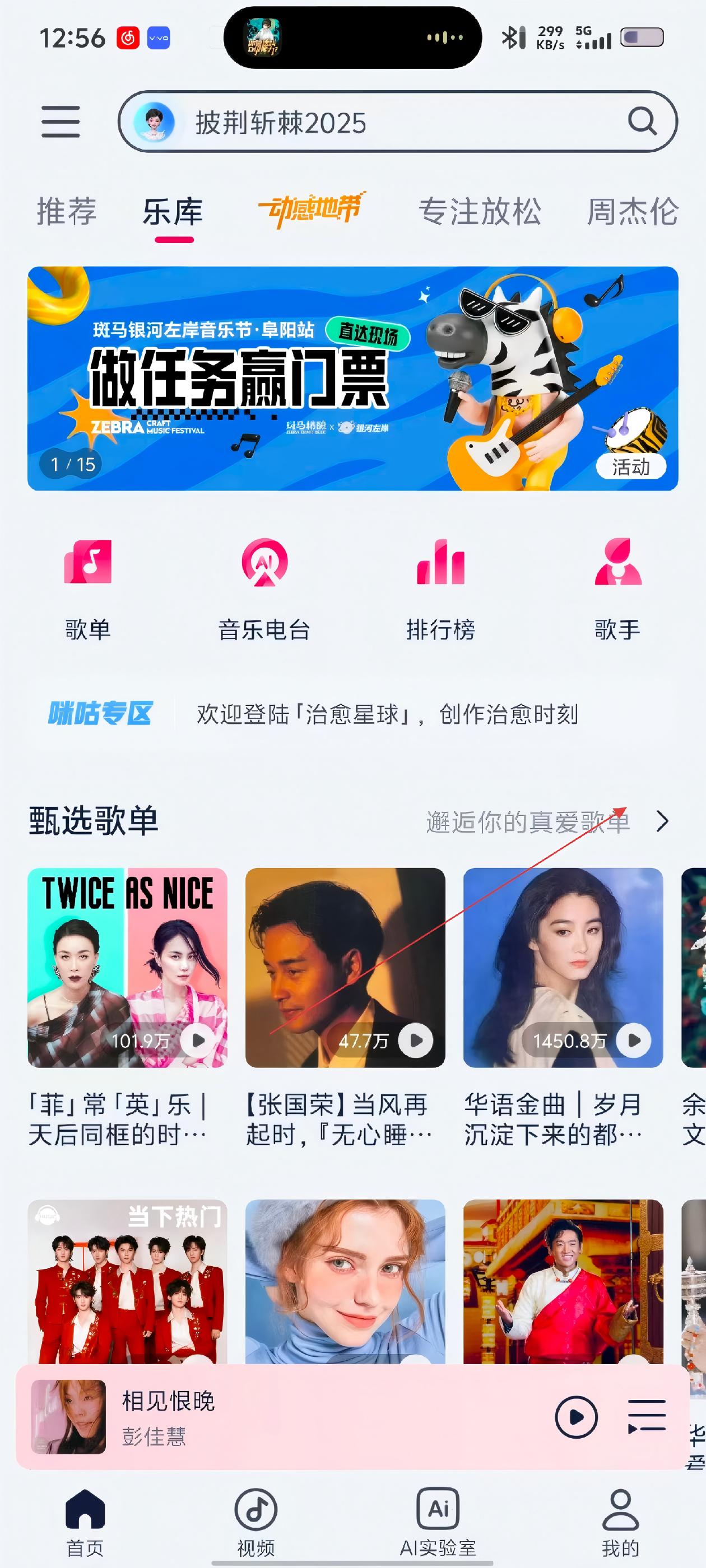 1、打开咪咕音乐APP,进入首页后,点击【乐库】,进入乐库相关页面。