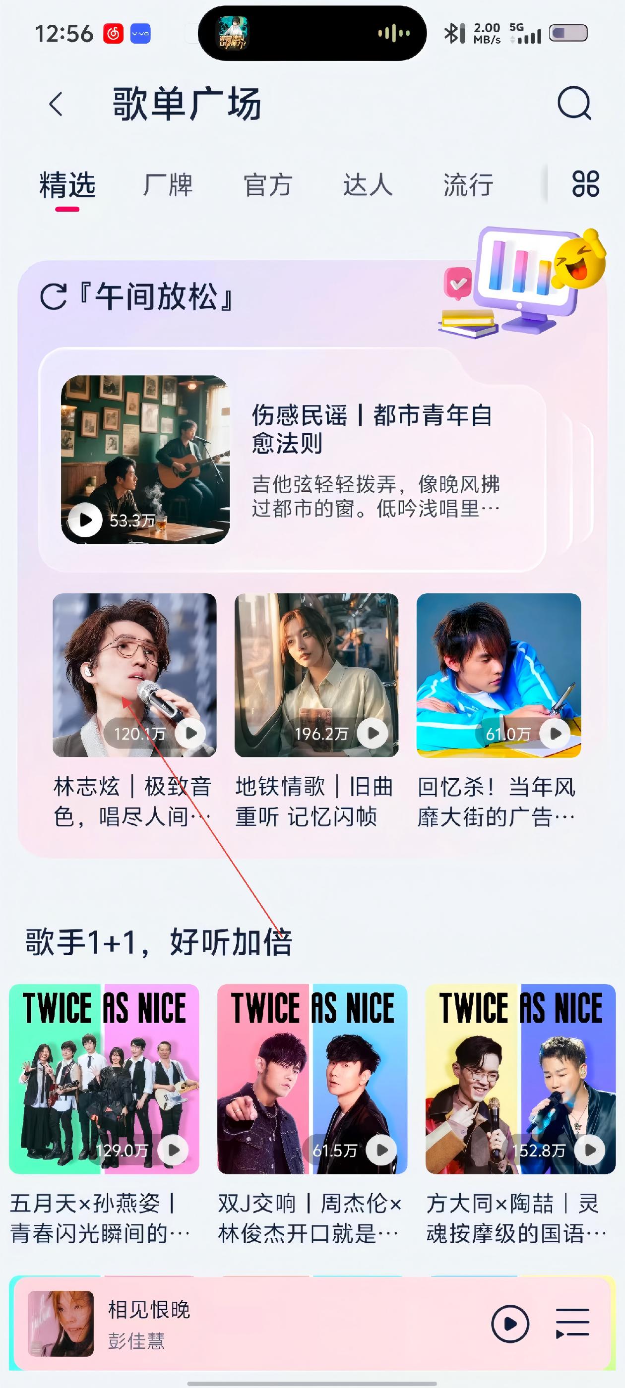 3、进入歌单广场,能看到各类歌单,选择“林志炫-极致音色,唱尽人间”歌单。