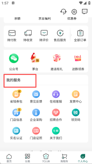 4、进入个人中心,可查看我的服务板块,里面有省钱券包、意见反馈等多项功能入口。
