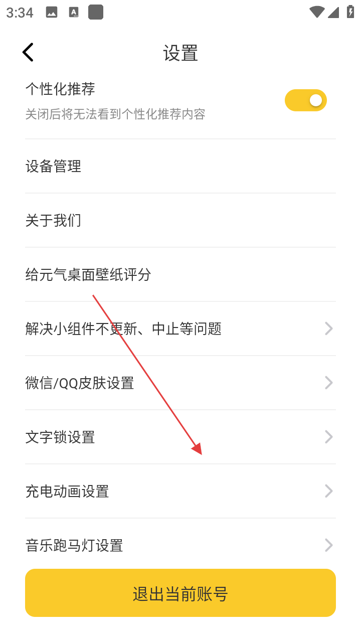 3、在设置页面,有个性化推荐、设备管理等选项,点击【文字锁设置】进入对应设置页面。