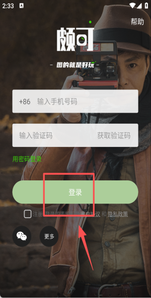 4、点“登录”输入手机号获取验证码,同意隐私政策后即可完成注册并同步作品。