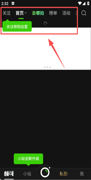 1、打开POCO相机,在首页上方将“关注”标签拖到首位,方便随时查看摄影师动态。