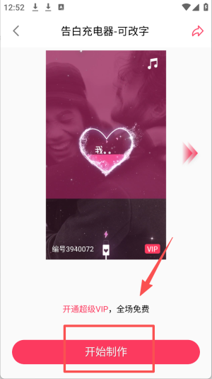 4、在特效模板详情页,点击“开始制作”按钮,开始你的创作。