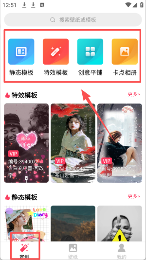2、在模板页面,点击“特效模板”或“静态模板”选择一个模板进行编辑。