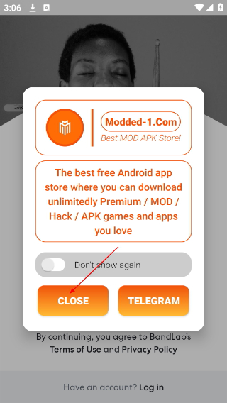 1、关闭弹窗:点击【CLOSE】按钮,关闭广告弹窗,进入BandLab主界面。